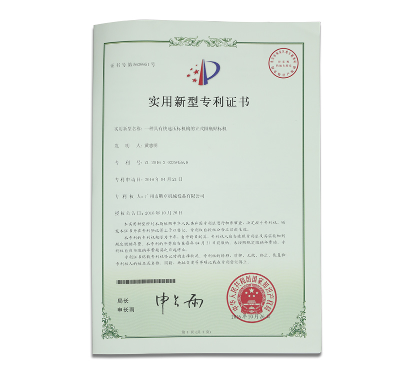 非標定制自動化包裝生產(chǎn)線證書