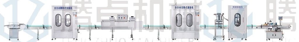 1.全自動生產線流程:人工把瓶放到送瓶轉盤上-自動洗瓶-自動高溫烘干殺菌-自動灌裝-人工燈檢-自動理蓋下蓋-自動旋蓋-自動打碼-自動貼標-人工收瓶