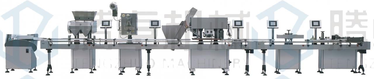 本線可對片劑(包括異形片)、硬膠囊、軟膠囊(各種形狀,透明、不透明)、丸劑,顆粒,豆類等進行計數分裝灌裝??膳c理瓶機、塞紙機。塞干燥劑機、旋蓋機、電磁鋁箔封口機、不干膠貼標機組成全自動生產線。完全符合GMP認證要求,廣泛用于醫藥、食品、化工等行業。